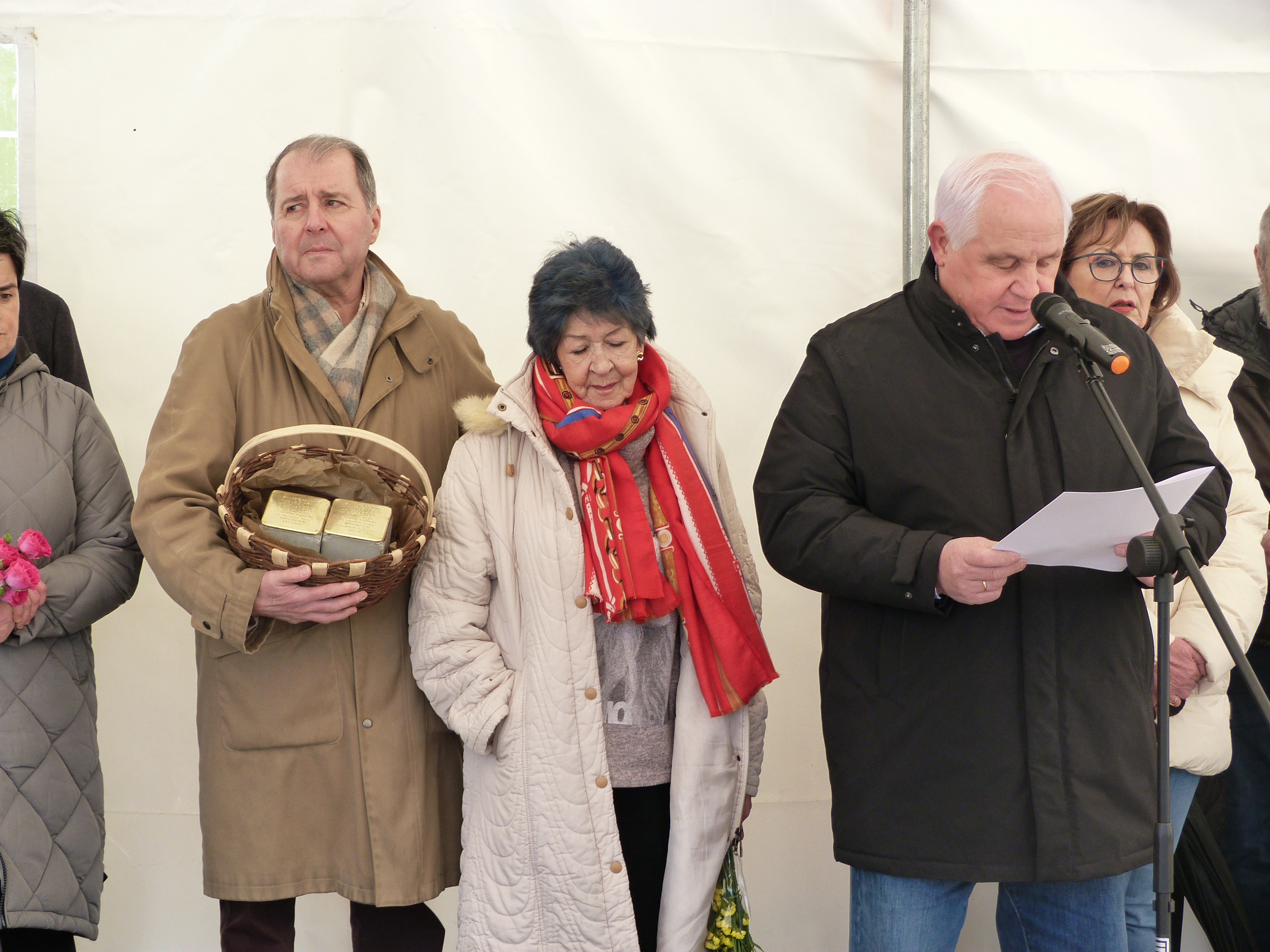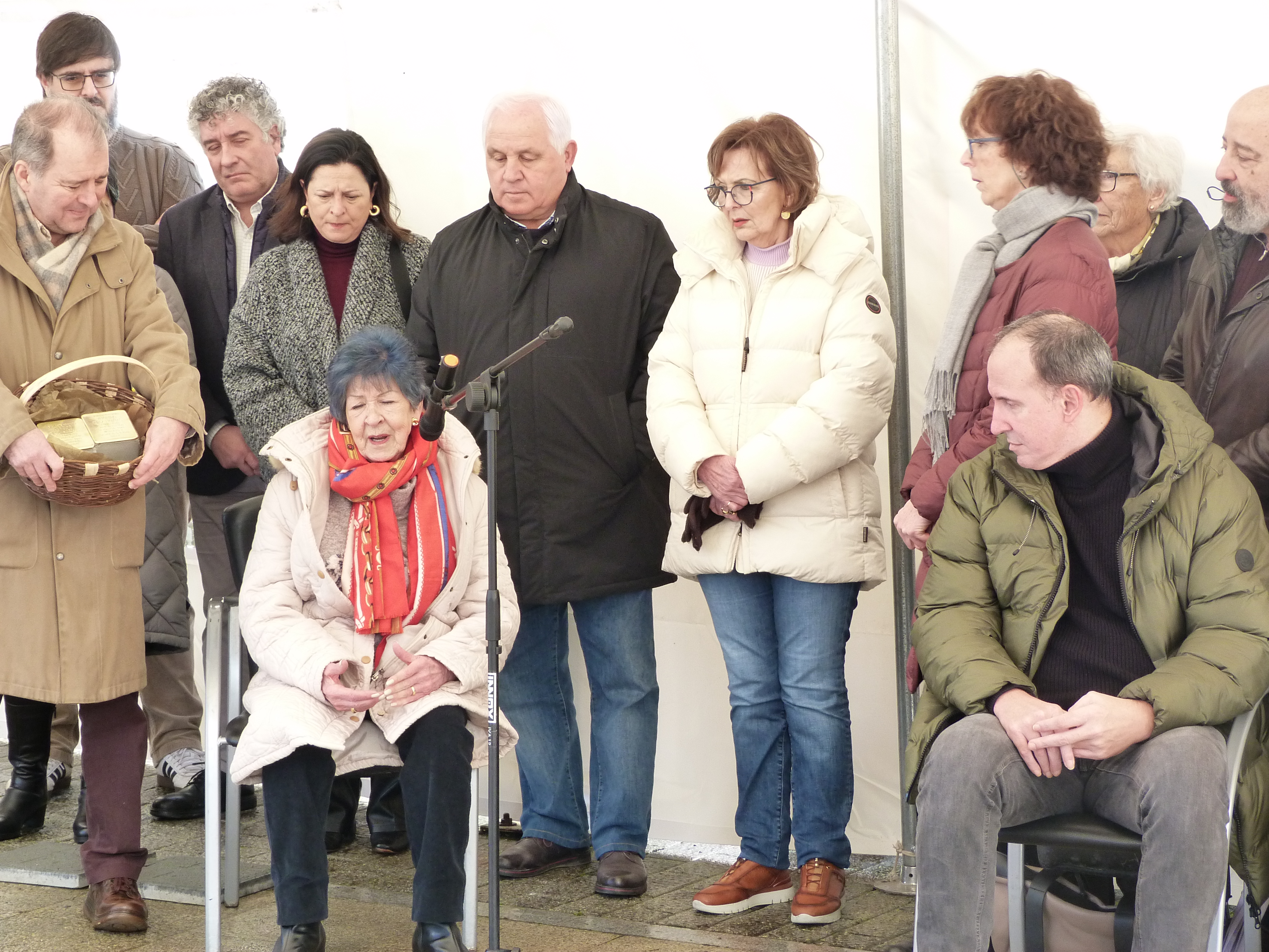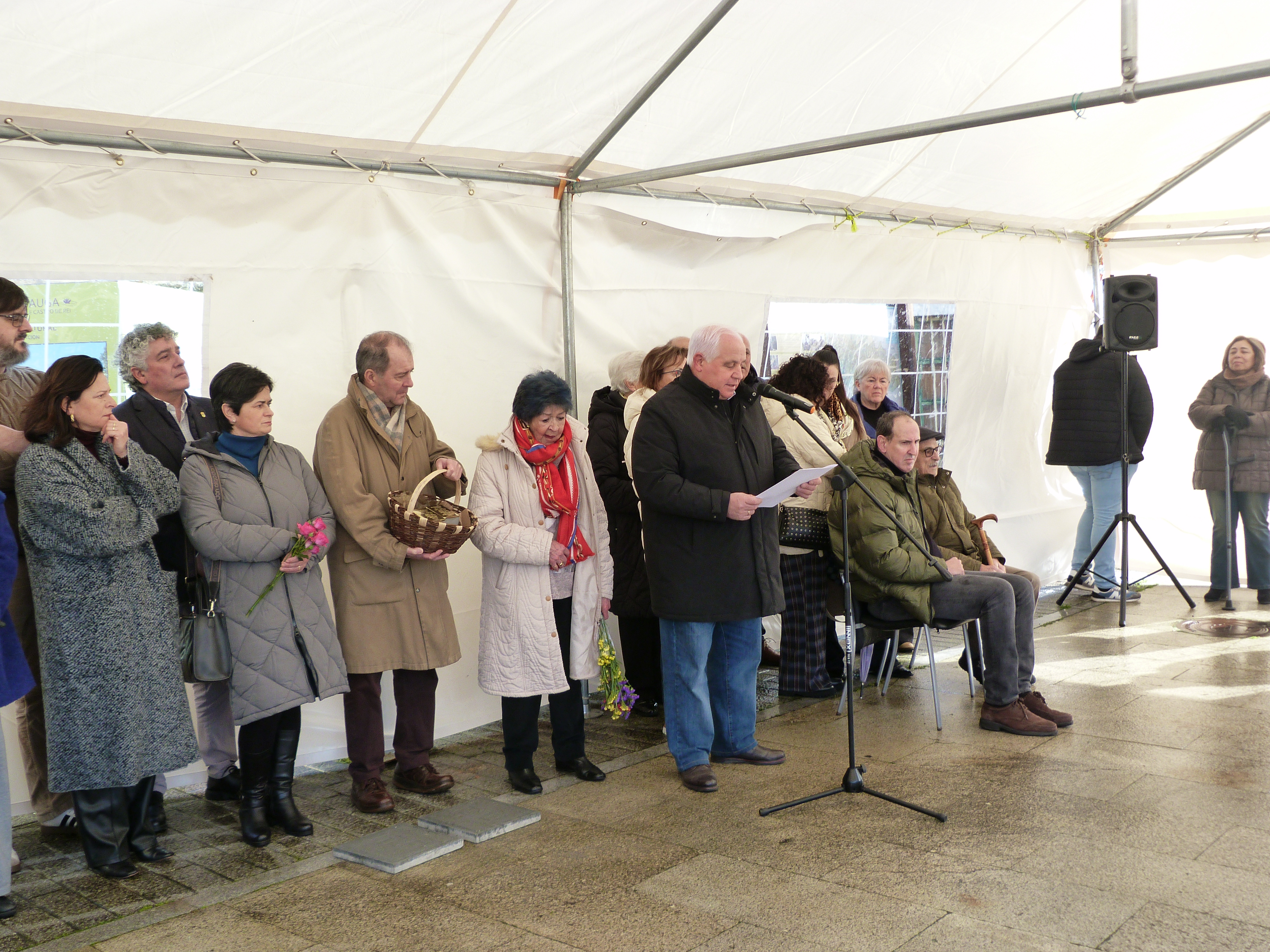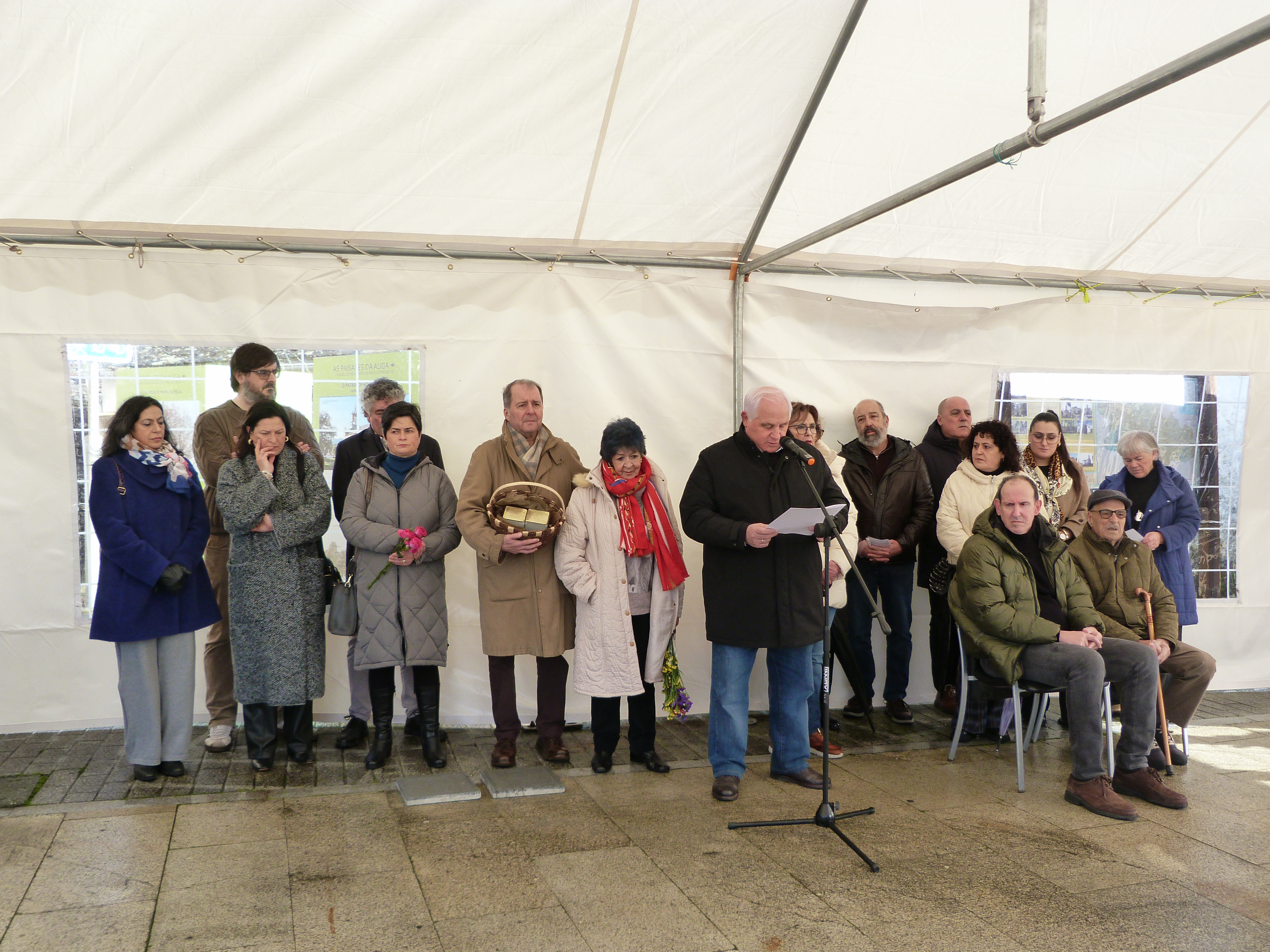 Un acto cheo de emotividade no participaron como estaba previsto o alcalde, José Pardo Lombao, o representante da ARMH, Miguel Freire e Encarna Díaz, filla e sobriña dos dous veciños da parroquia de Mosteiro en cuxa memoria quedaron colocadas sendas pedras da memoria ao carón do Concello de Outeiro de Rei; ademais, Sara Martínez interpretou co violín as pezas Kol Nidrei, de Max Bruch e Cant des Ocells, arr. Pau Casals e Maruxa Boquete recitou o poema de Primo Levi Se isto é un home.