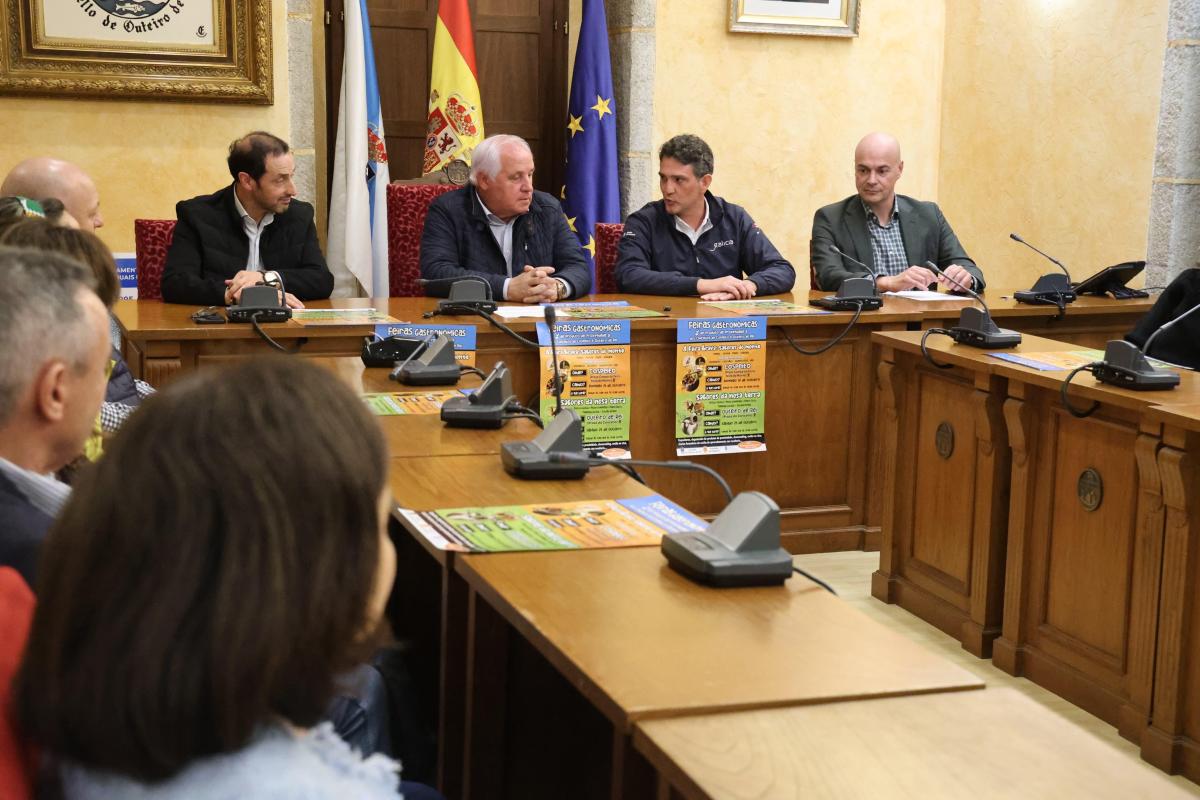 O martes tivo lugar no Concello de Outeiro de Rei a presentación da feira gastronómica Sabores da nosa terra, incluida dentro da iniciativa FEIRAS GASTRONÓMICAS, de produto de proximidade, dos CONCELLOS DE OUTEIRO DE REI E COSPEITO; na presentación estiveron presentes os alcaldes dos respectivos concellos, José Pardo e Armando Castosa, acompañados do delegado territorial, Javier Arias, e doutras autoridades e produtores de Outeiro de Rei que participarán na mesma.