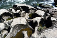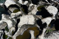 Dependendo do caudal do río quedan á vista unhas rechamantes formas rochosas. Nalgúns casos, totalmente planas e noutros noutros aparecen como marmitas de xigante, formas erosivas sobre o granito, de forma redondeada, producidas polos remuíños da auga que desgastan a roca.